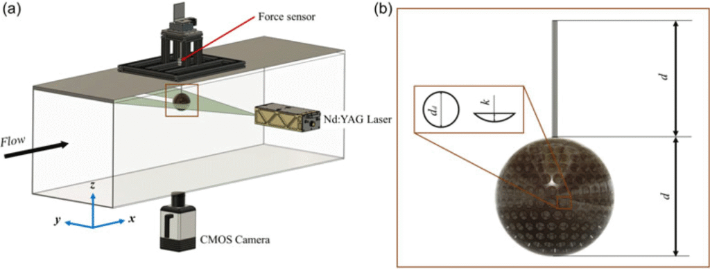 Bola digantung di dalam terowongan dan angin ditiupkan dengan berbagai kecepatan. Di sinilah tim peneliti mempelajari respon bola terhadap perubahan dimpel pada permukaan. Mereka menggunakan sensor yang disebut load cell untuk mengukur gaya yang dialami bola akibat aliran angin. Sementara itu, laser dan kamera berkecepatan tinggi memetakan bagaimana partikel-partikel fluida bergerak di sekitar bola, memberi gambaran tentang bagaimana aliran fluida berubah.