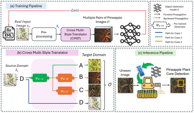 Pan, Kuang-Yueh dkk. 2025. YOLO-CMST: Towards accurate pineapple flowering induction using YOLO-based models with the Cross Multi-Style Translator. Computers and Electronics in Agriculture 235, 11031.