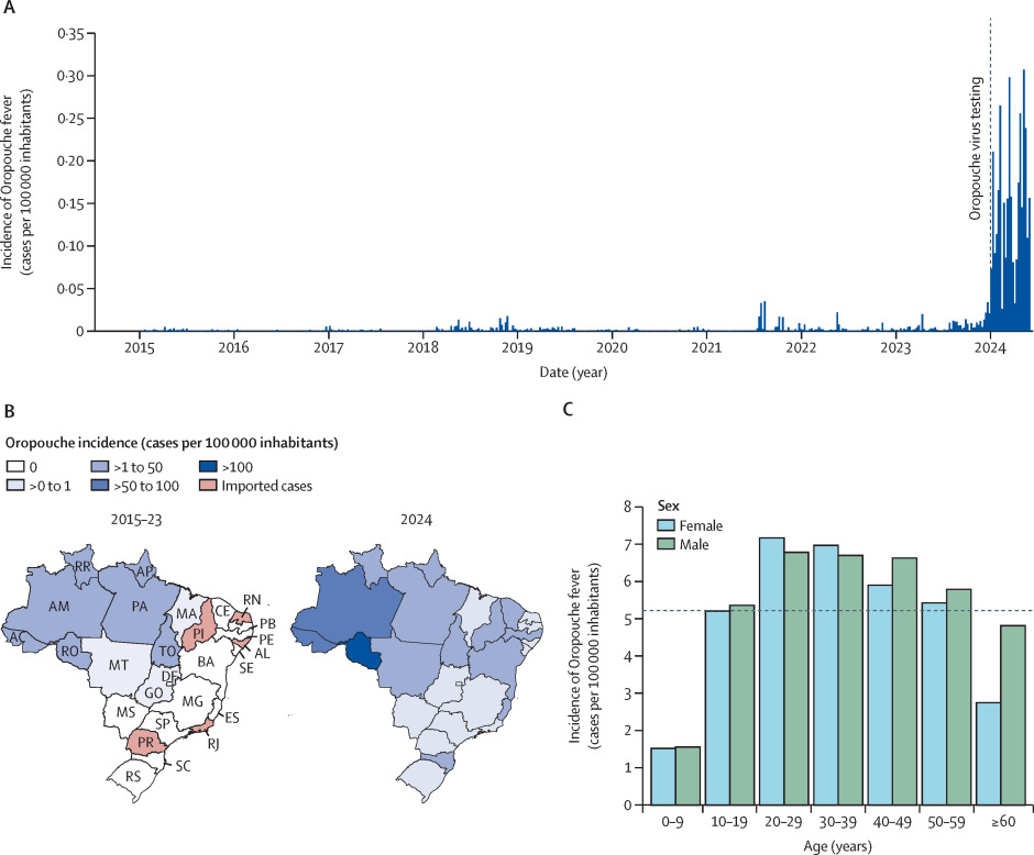 Rodriguez-Morales, Alfonso J & Drexler, Jan Felix. 2025. Re-emergence of Oropouche virus in Brazil and Latin America. The Lancet Infectious Diseases 25 (2), 137-139.