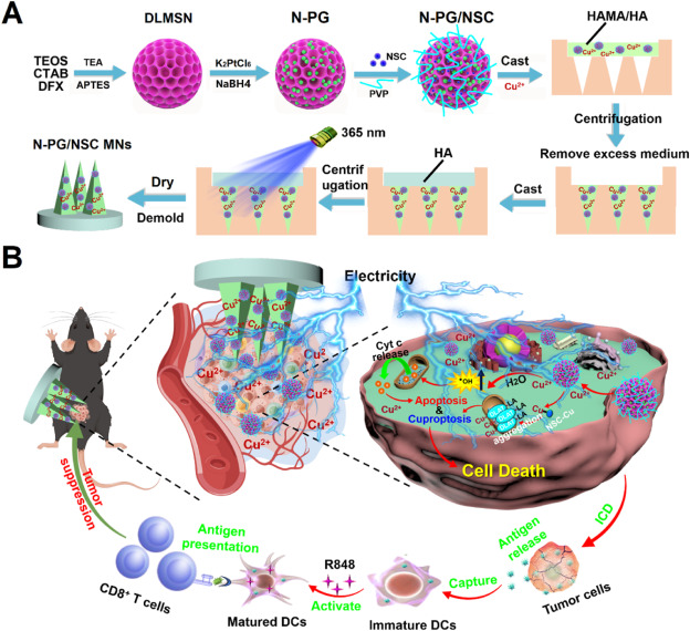 Wan, Guoyun dkk. 2025. Light-cured millineedle platform delivers “nano-pomegranate” for combinatorial electrodynamic therapy and cuproptosis against oral carcinoma. Bioactive Materials 53, 718-736.