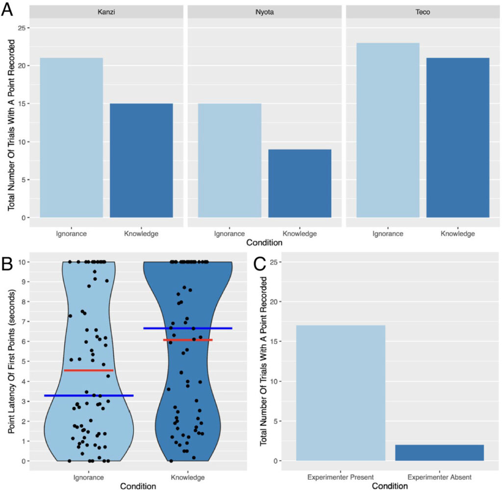 Hal yang sangat menarik dalam eksperimen ini adalah bagaimana bonobo menyesuaikan perilaku mereka berdasarkan pengetahuan rekan mereka. Ketika mereka tahu bahwa Townrow tidak mengetahui lokasi makanan, mereka akan lebih sering dan lebih cepat menunjuk ke cangkir yang benar. Sebaliknya, ketika Townrow sudah tahu di mana makanan itu, bonobo lebih tenang dan tidak terlalu sering menunjukkan lokasi makanan.