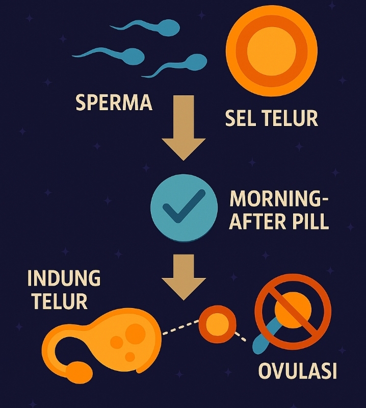Banyak orang keliru mengira morning-after pill bekerja dengan “menggugurkan” kehamilan yang sudah terjadi. Itu tidak benar. Pil ini bukan obat aborsi. Cara kerjanya lebih pada mencegah kehamilan sebelum sempat terjadi.