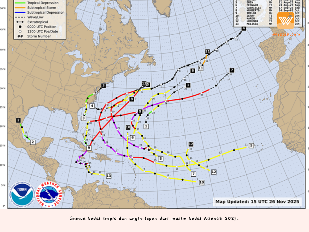 Musim badai Atlantik tahun 2025 secara resmi berakhir pada 30 November. Setelah badai terakhir, Hurricane Melissa, melanda wilayah Karibia pada akhir Oktober, kondisi di kawasan tropis Atlantik menjadi tenang. Kini saatnya kita melihat kembali perjalanan musim badai tahun ini, yang penuh dengan berbagai fenomena cuaca ekstrem dan pelajaran berharga.