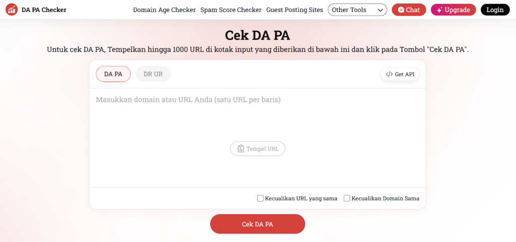 Tautan Alat:https://id.seedbacklink.com/tool/da-pa-checker/