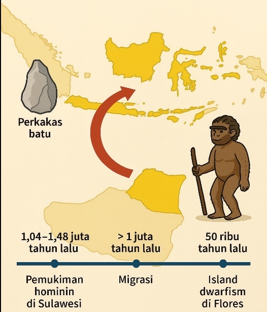 Kisah Homo floresiensis adalah salah satu misteri paling menarik dalam sejarah manusia purba. Fosil mungil yang ditemukan di Liang Bua, Flores, membuka pintu bagi pertanyaan-pertanyaan besar tentang migrasi, adaptasi, dan evolusi. Kini, temuan perkakas batu berusia lebih dari satu juta tahun di Sulawesi memberi bab baru pada cerita ini.