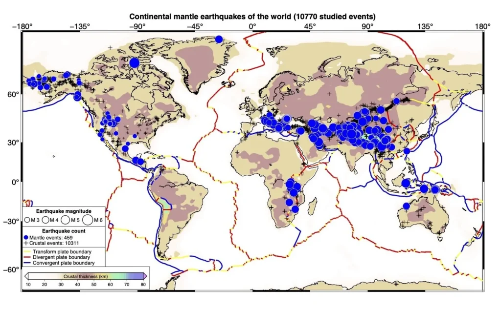 Temuan gempa mantel ini tersebar di berbagai lokasi di bumi. Bahkan beberapa daerah yang tidak pernah kita anggap sebagai zona gempa besar ternyata memiliki gempa mantel yang hampir tersembunyi. Beberapa dari area ini termasuk di bawah pegunungan Himalaya di Asia Selatan dan daerah sekitar Selat Bering yang berada di utara lingkaran Arktik. Ini menunjukkan bahwa mantel bumi aktif dan lebih dinamis daripada yang para ilmuwan kira sebelumnya.