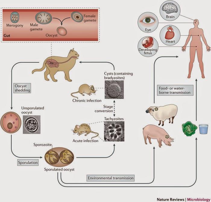 T. gondii menginfeksi sekitar 2 miliar orang di seluruh dunia dan telah dikaitkan dengan perubahan perilaku pada manusia dan vertebrata lainnya. Berdasarkan hasil penelitian, parasit tersebut bereproduksi pada kucing, dan kucing yang terinfeksi T. gondii akan meningkatkan keberaniannya untuk mengambil resiko. T. gondii pada kucing mengubah kebiasaan kucing menjadi lebih dapat mengambil resiko, termasuk keinginan untuk mengeksplor tempat baru yang lebih jauh dan menjadi lebih berani.